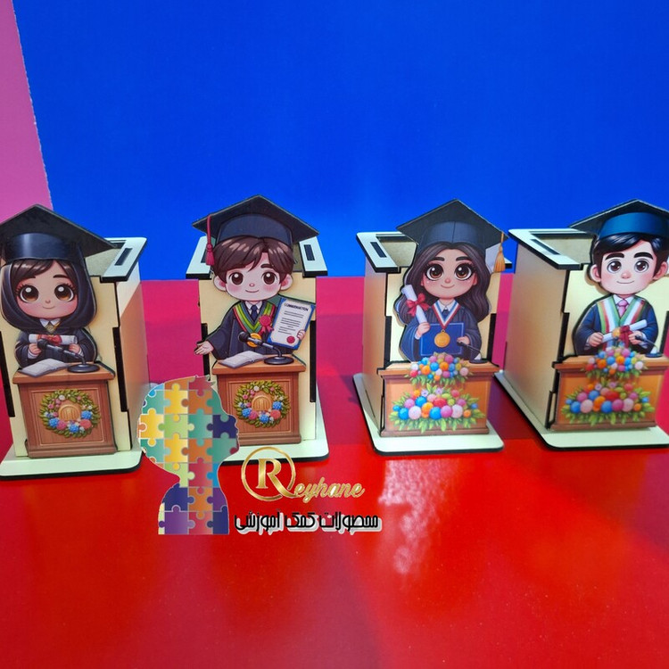 جاقلمی چوبی با طرح فارغ التحصیلی دخترانه و پسرانه مناسب جایزه ی مدرسه و جشن پایان سال