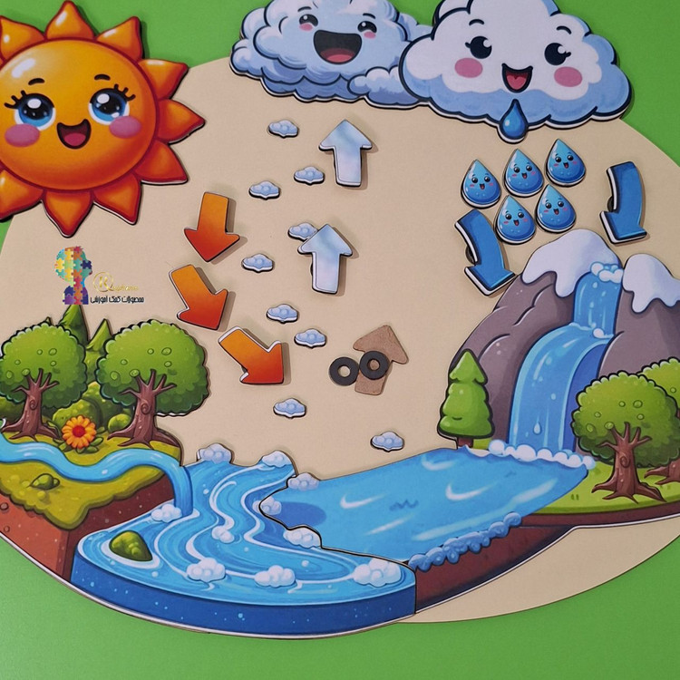 تابلوی چرخه ی آب چوبی 50 سانتی با فلش های مگنتی