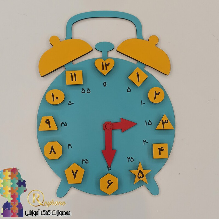 ساعت آموزشی چوبی مگنتی با دقیقه شمار پازلی ۳۴سانتی زنگولهدار و زیبا مناسب آموزش ساعت