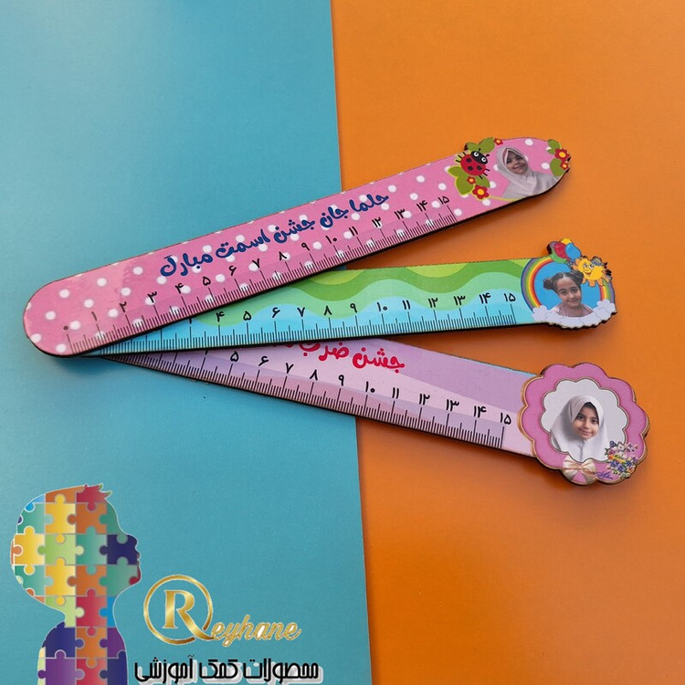 خط کش چوبی فانتزی با طرح دلخواه شما و عکس اختصاصی دانش آموزان هدیه مناسب برای جشن ضرب،جشن اسم،.....